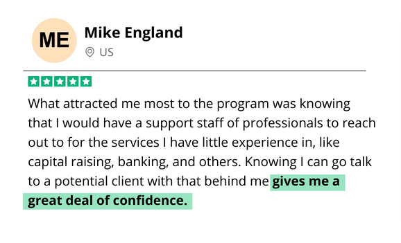 - The program gives you a repeatable system to consistently attract and close high-value clients, so you’re not relying on luck or referrals.