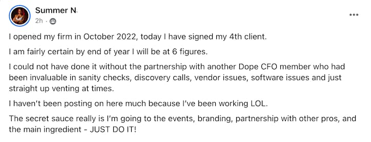 You can decide whatever you want to do with the skills you’ll gain from Dope CFO.